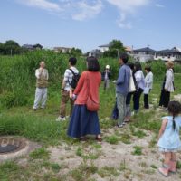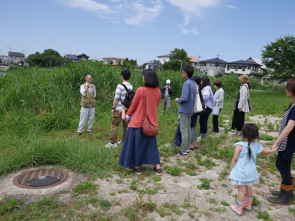 ちょうど昼過ぎから晴れてきました。せっかくですので外に出て、「アシ」とはどういう植物なのかを見に行きました。園内では、畳に使われるイグサも身近なところで観察できます。