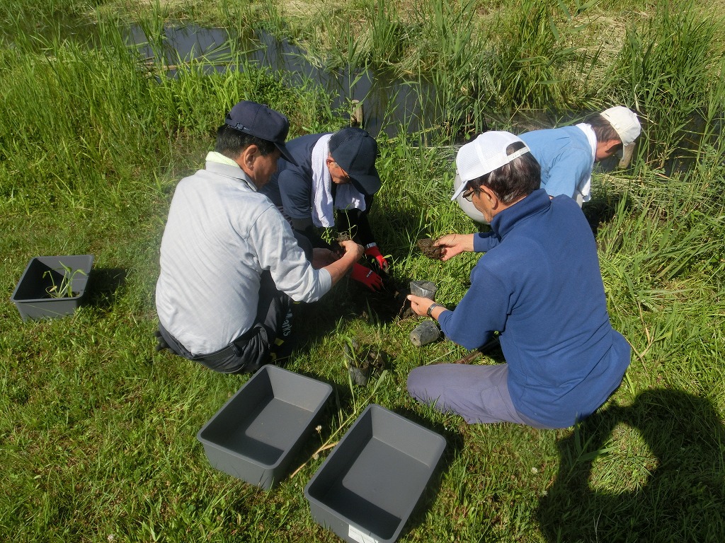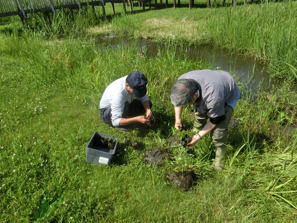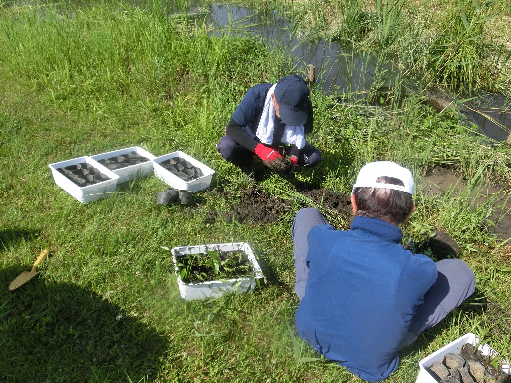 そうなると、小さなミズアオイの苗は水中に沈んで生育しなくなります。その小さな苗を救出する活動を行いました。