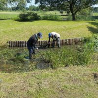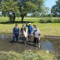 今回の作業は、前回の活動で一旦鉢上げしたミズアオイの苗の移植に向けて、移植先の除草作業です。