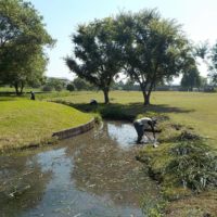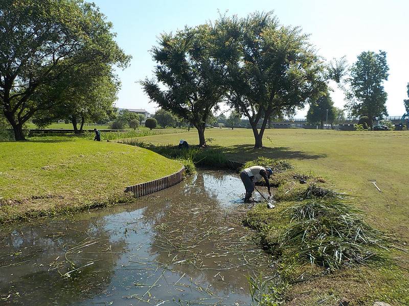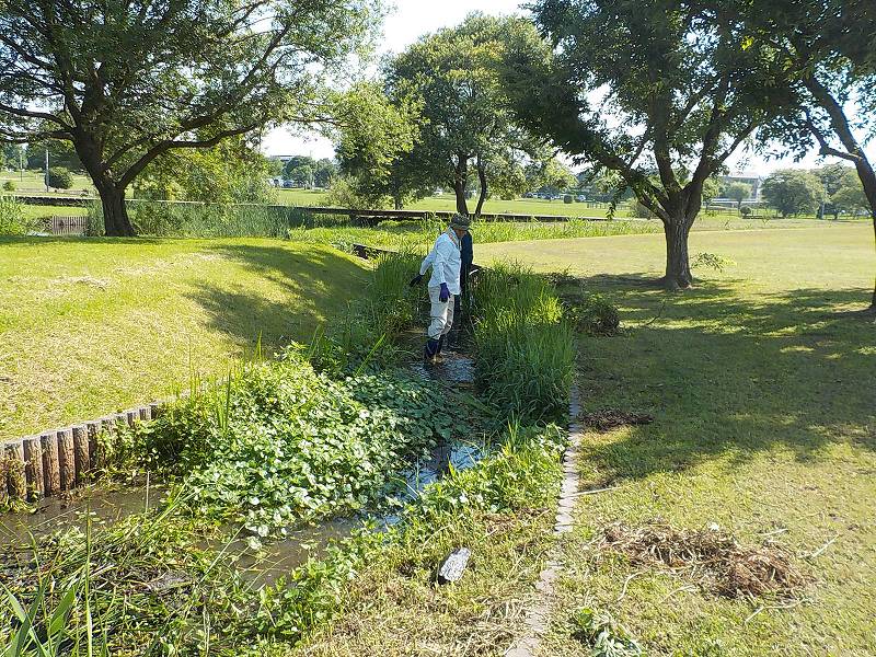 作業前は、サンカクイやブラジルチドメグサなどの様々な植物が生い茂っていた水路ですが…