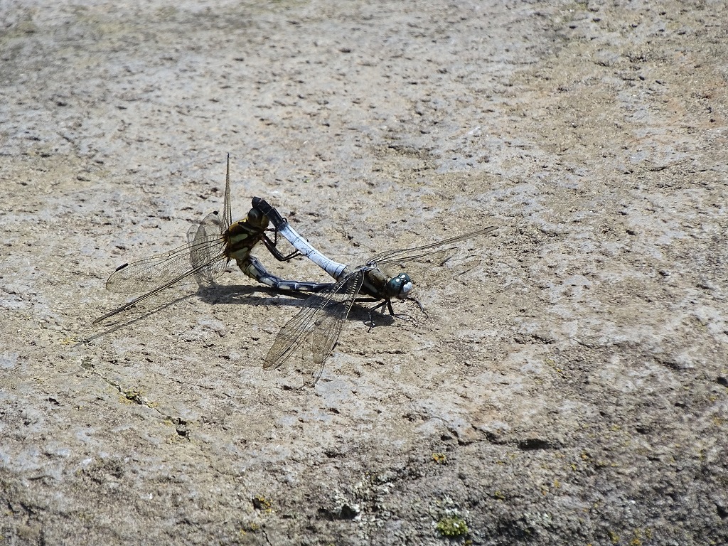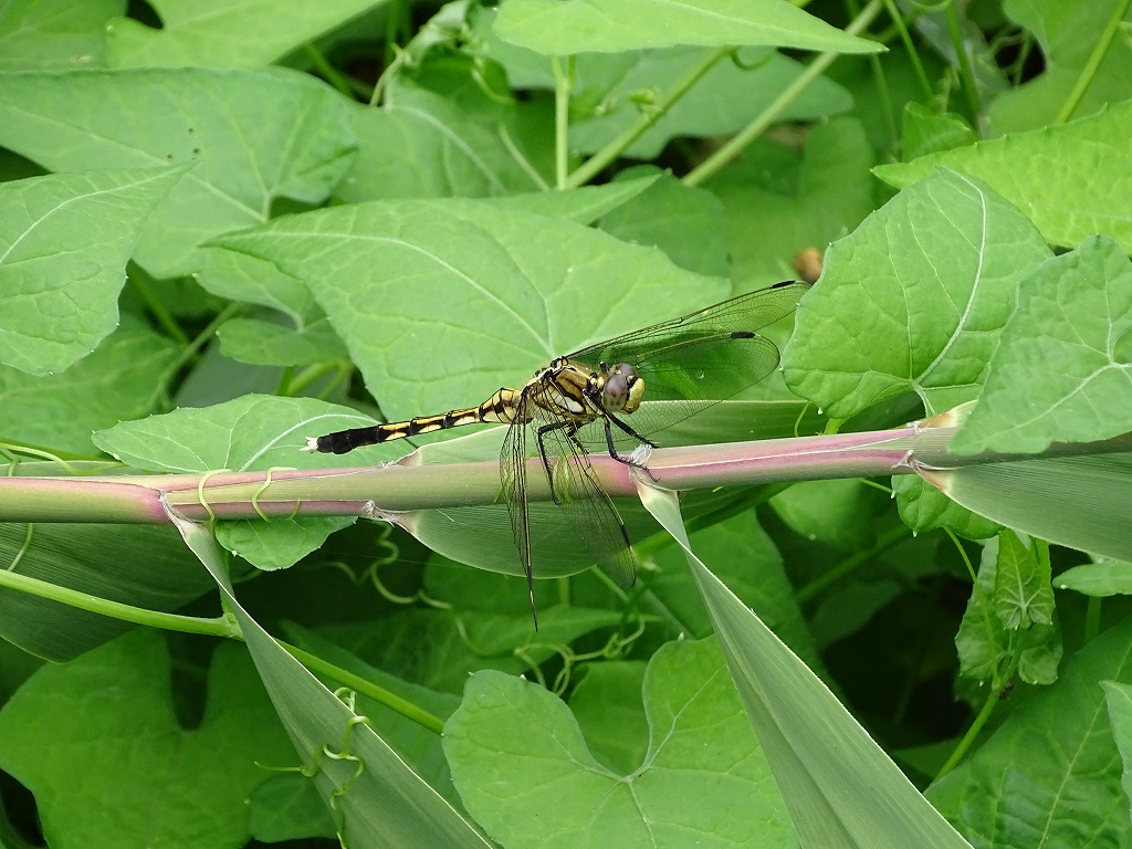 シオカラトンボはどちらかというと平たい面に止まる印象です。コフキトンボは枝先に止まるイメージでしょうか。