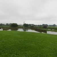 雨もやみ、少し水位は下がってきていますが、増水した時の水は濁っており、園路と水路との境目があいまいで大変危険です。