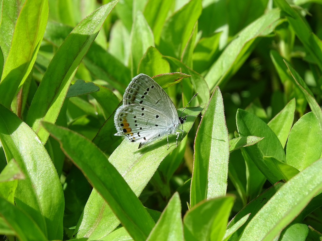 園内でよく見かけるシジミチョウの仲間、ツバメシジミです。
