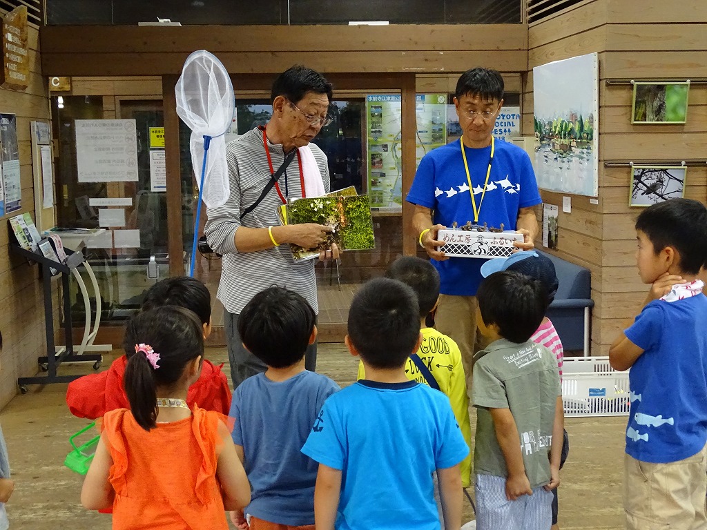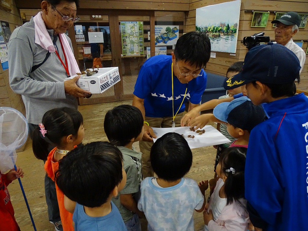 写真や抜け殻などを使ってのお勉強。子供たちはとても興味津々でしたよ。