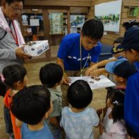 セミたちに光を一斉にあてないように、またセミの幼虫にはさわらないようにするなどの注意事項を説明しての観察会となります。
