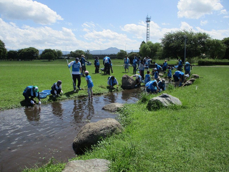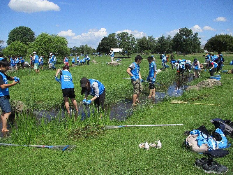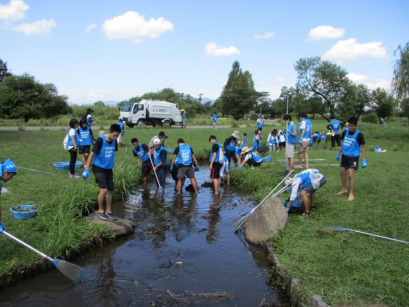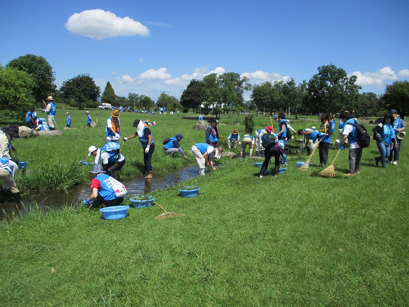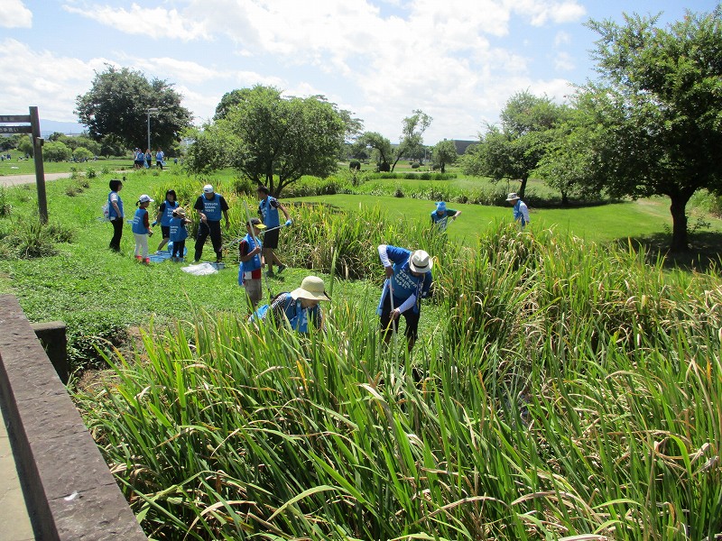 今日は、早朝より“TOYOTA SOCIAL FES!! Presents ~憩いの水辺保全プロジェクト~”による水草清掃活動を行いました。