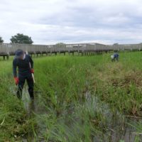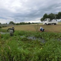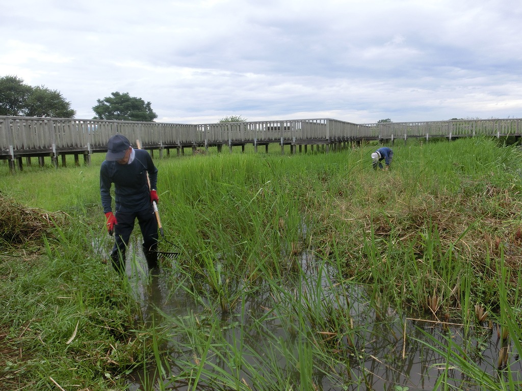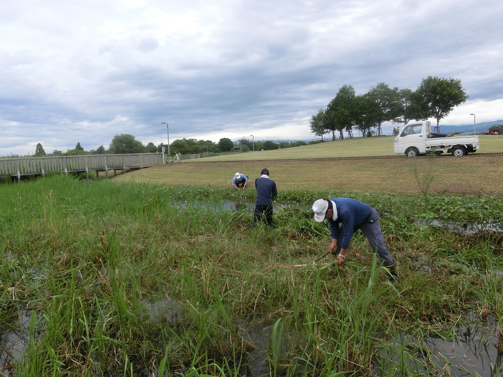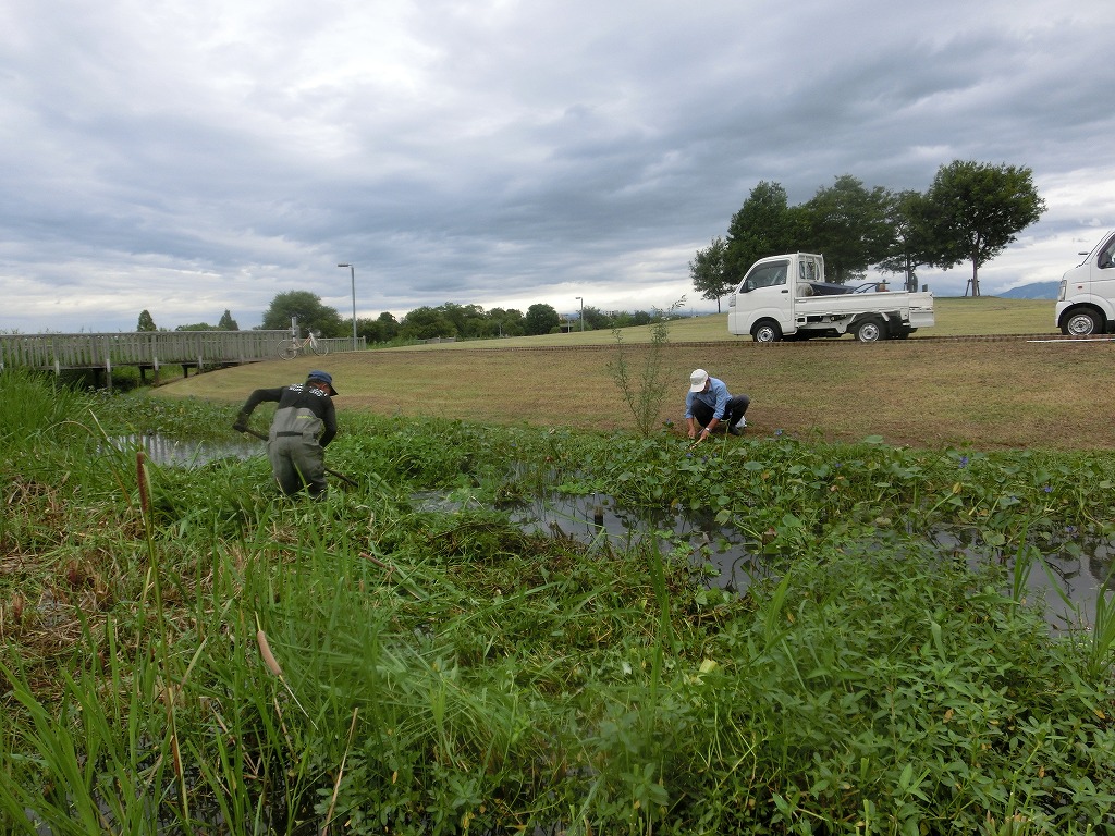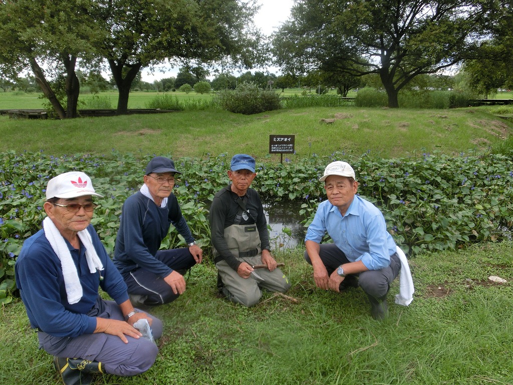 9月15日土曜日にミズアオイの鑑賞会を実施します。その最終的な準備として、隊友会の皆様がミズアオイの生育地をきれいにされました。