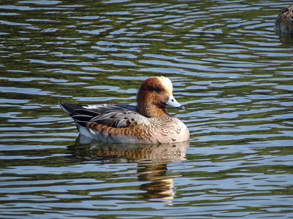園内では、渡り鳥の数が少しずつ増えてきています。写真のカモは、江津湖で最も身近なカモ、ヒドリガモです。