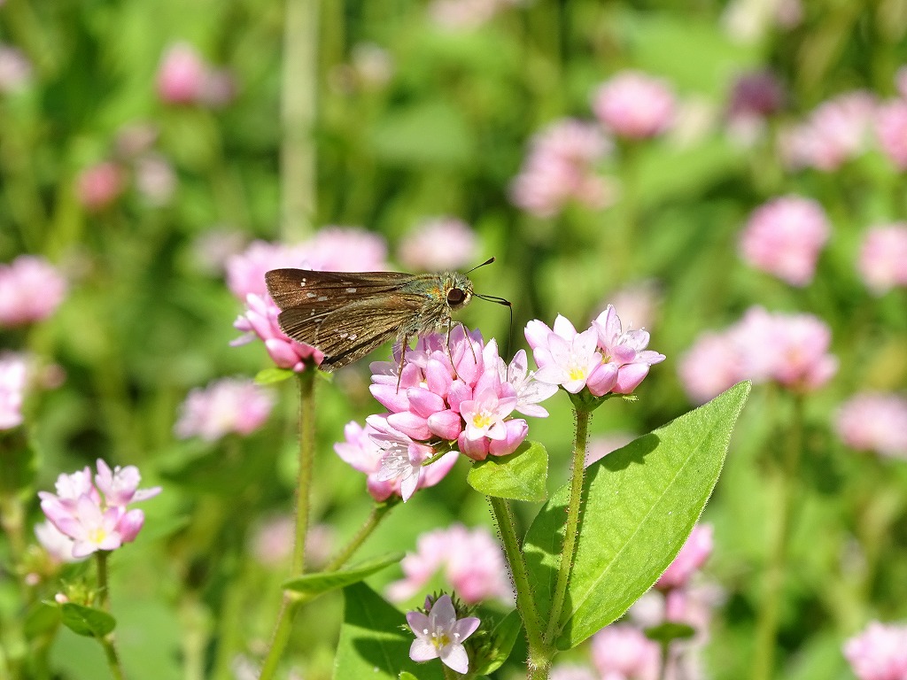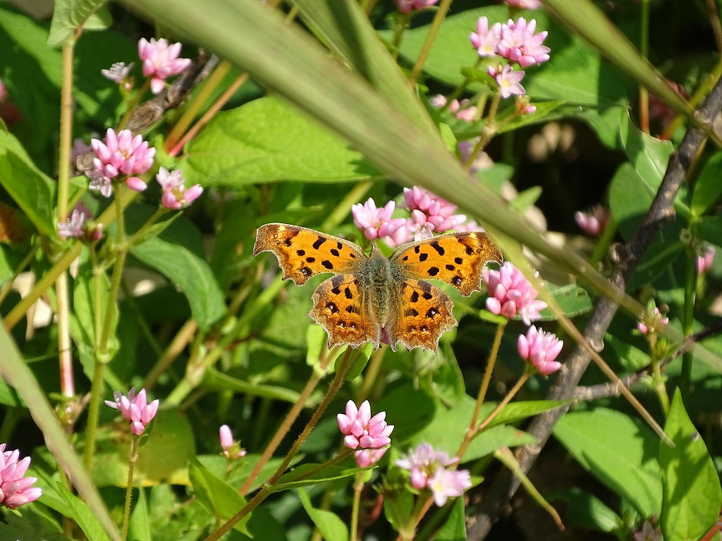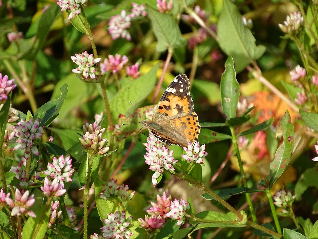 急に冷え込んできました。今日園内を回ってみると、昆虫の姿をあまり確認できませんでした。冷え込むと昆虫も姿を現さないのでしょう。過日の写真ですが、ミゾソバに来ていたチョウの写真を…。