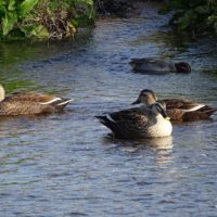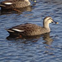 江津湖でよく見かけるカモ、カルガモです。