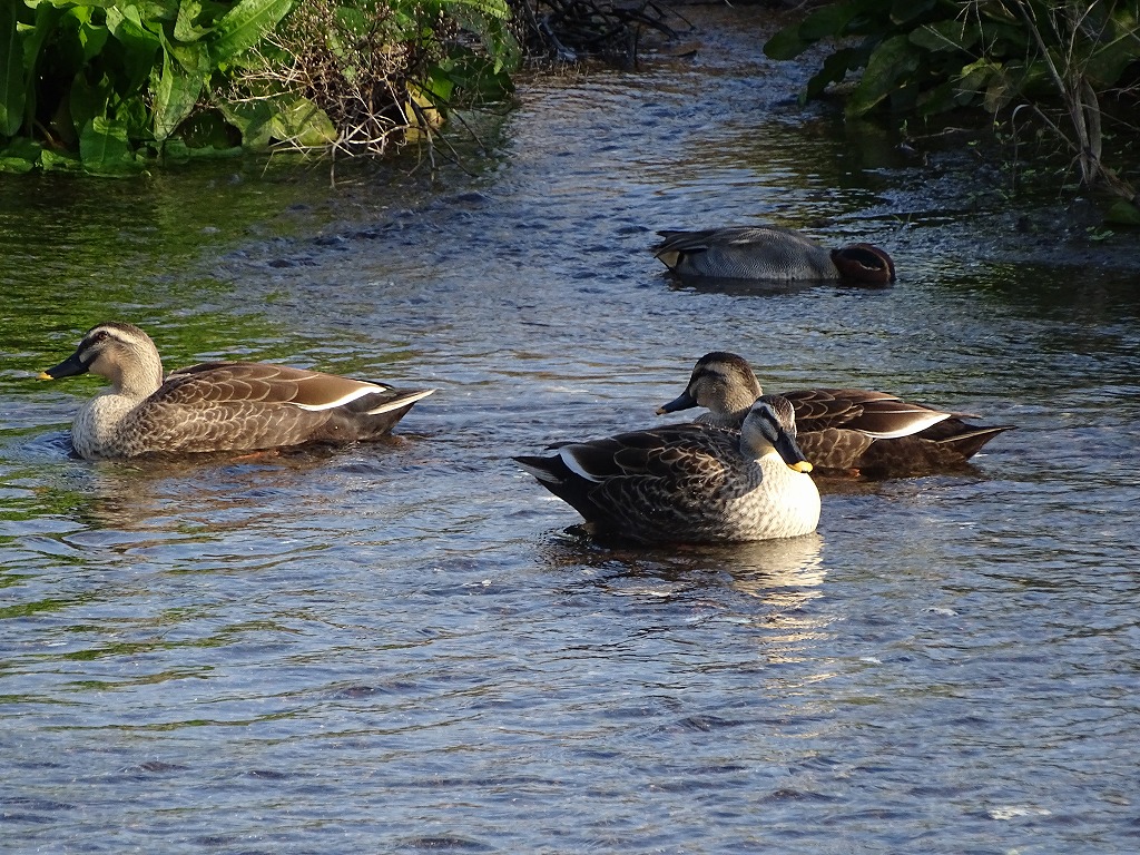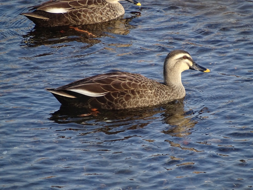 カルガモは、くちばしの先が黄色いのが特徴です。他のカモとはそこを見て区別すると分かりやすいかもしれません。