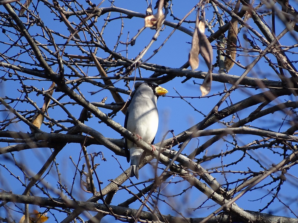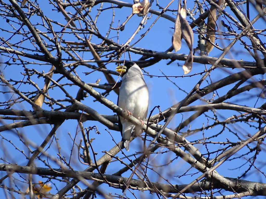 大きい口ばしが特徴的な野鳥です。大きな口ばしでエノキなどの硬い実もかみ砕きます。