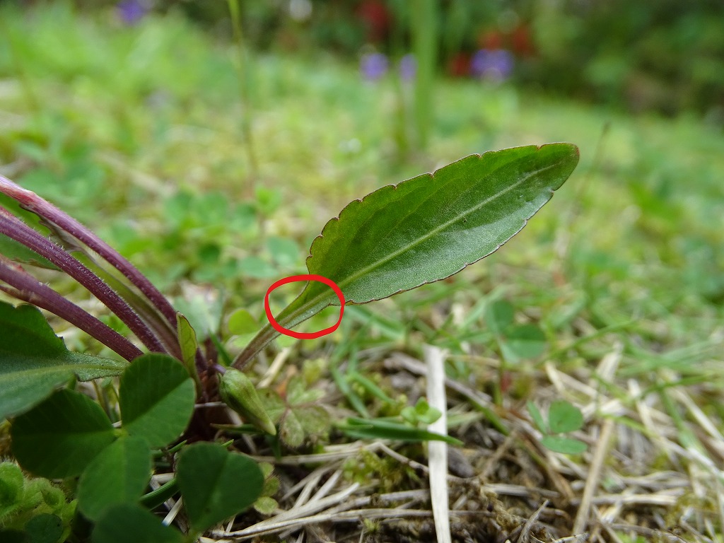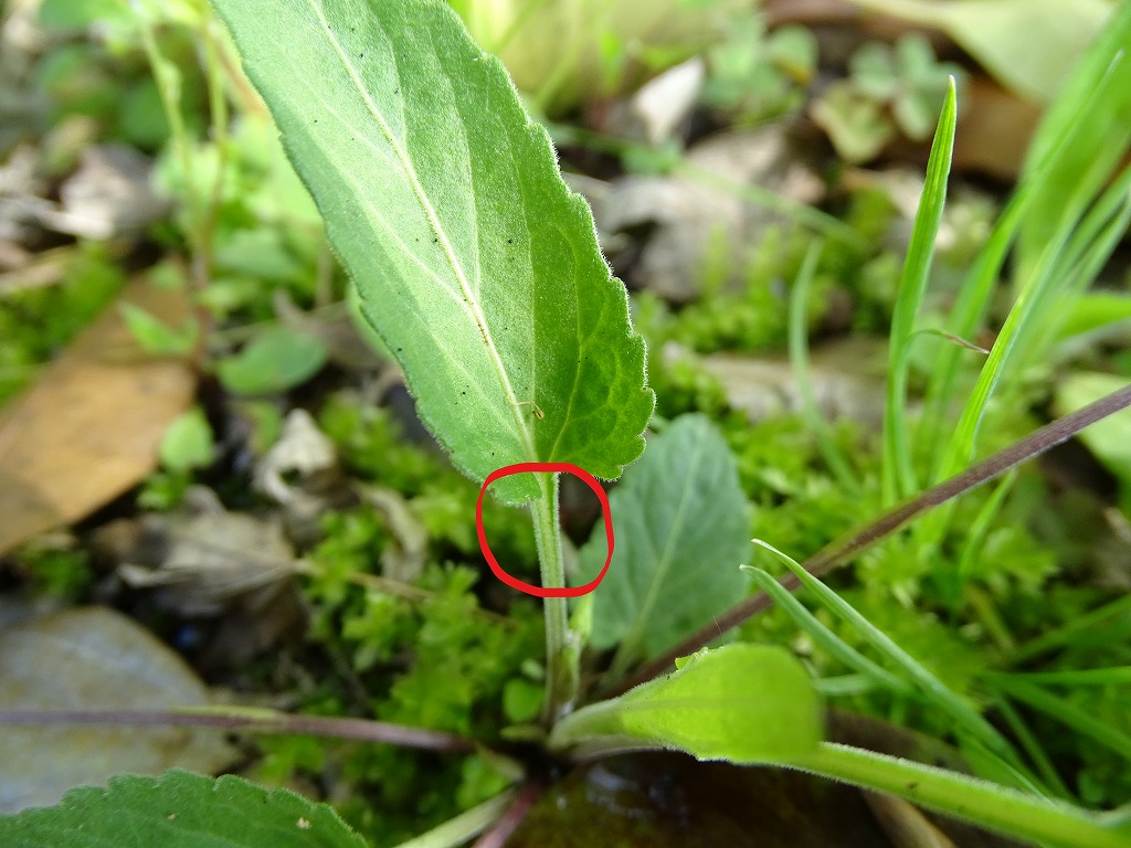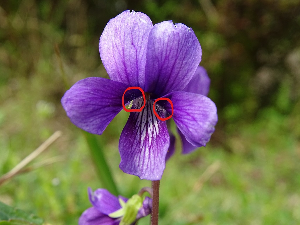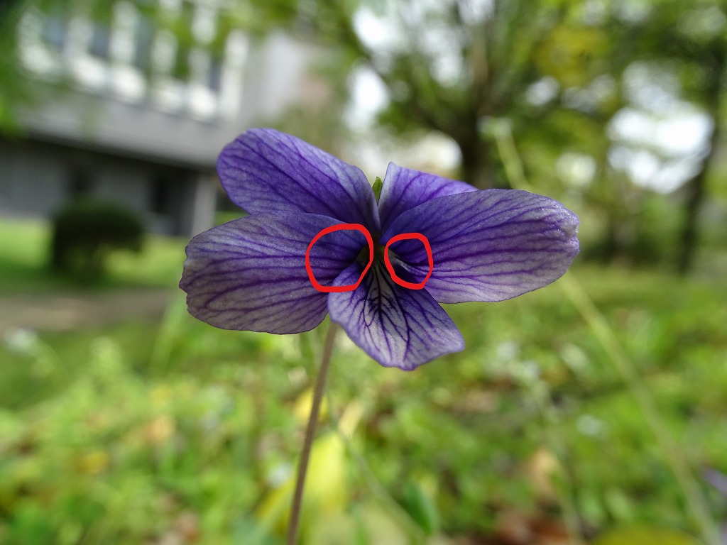 赤丸で囲んだところを見てください。スミレには翼があり、ノジスミレには翼がありません。