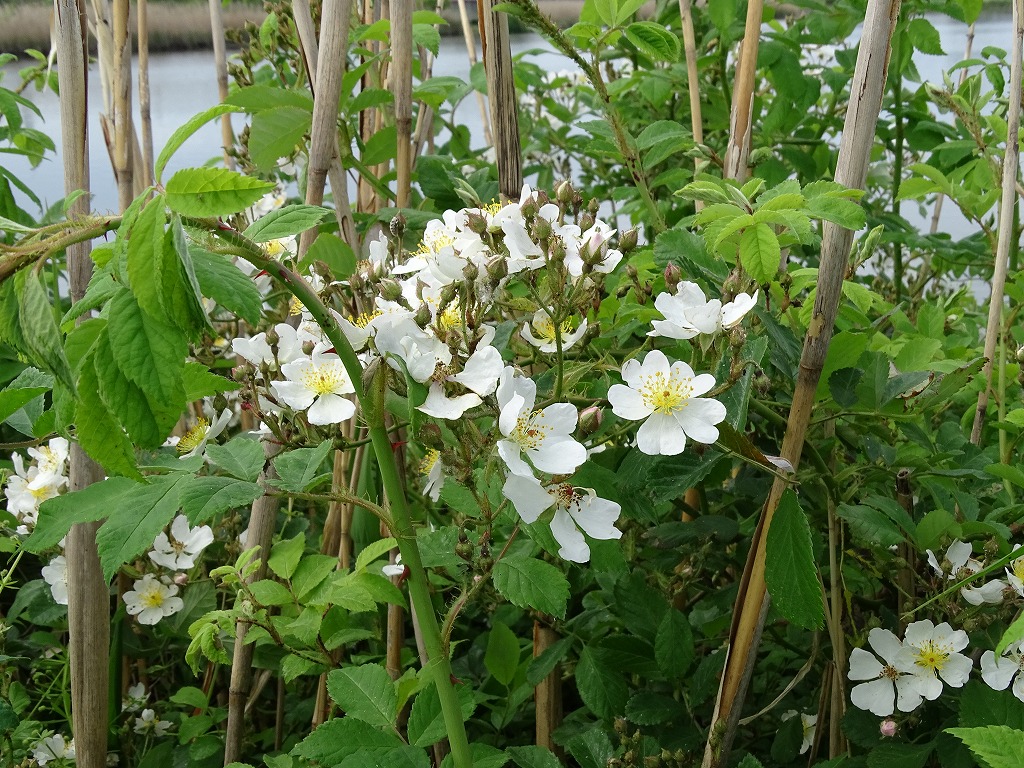 こんにちは、水前寺江津湖公園です。 園内ではノイバラの花が咲き始めています。 よく見かける、自生している野生のバラです。 よい香りがして、とてもきれいです。