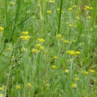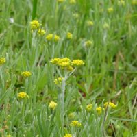 黄色い花が密集しているように咲いています。 茎や葉は白い毛で覆われています。 他の場所では少なくなってきていると聞きます。昔から親しまれている植物ですので、大事にしたいですね。