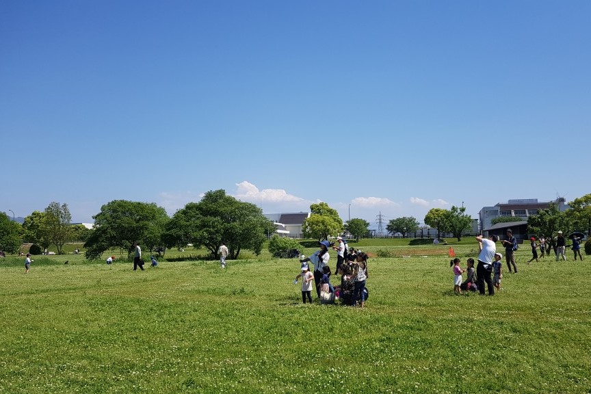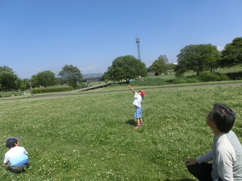 今日は「江津湖で紙ヒコーキあそび」を実施しました。