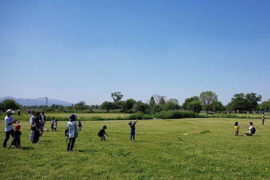 「江津湖で紙ヒコーキあそび」はゴールデンウィークの期間中(5月3日~6日まで)毎日実施します。先着15名で、13時から受付を開始します。