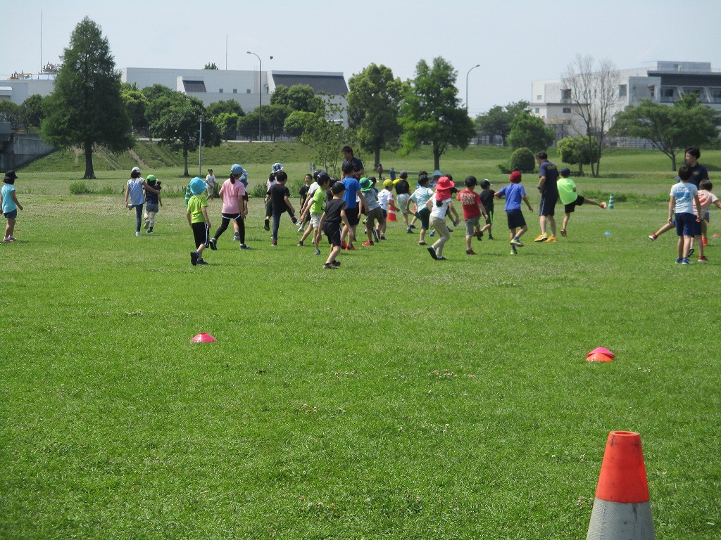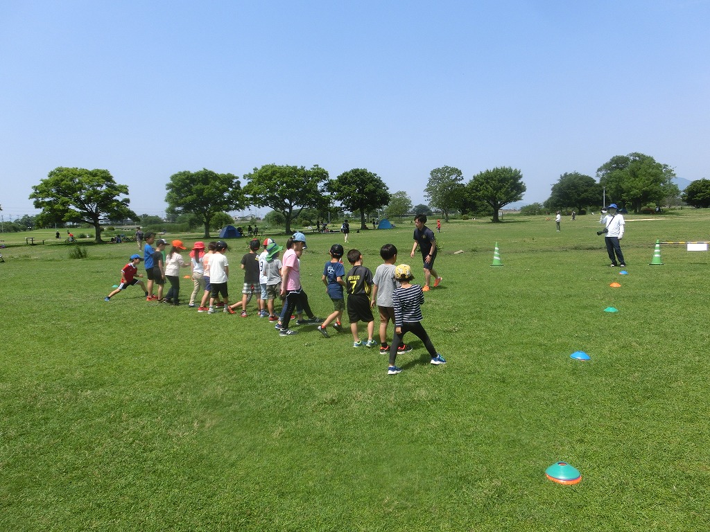 こんにちは、水前寺江津湖公園です。 昨日広木地区でかけっこ教室を実施しました。 お手伝いいただいたのは、熊本市社会教育振興事業団の方々です。