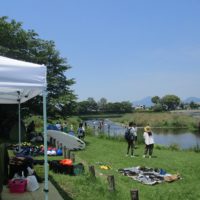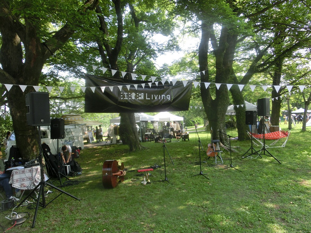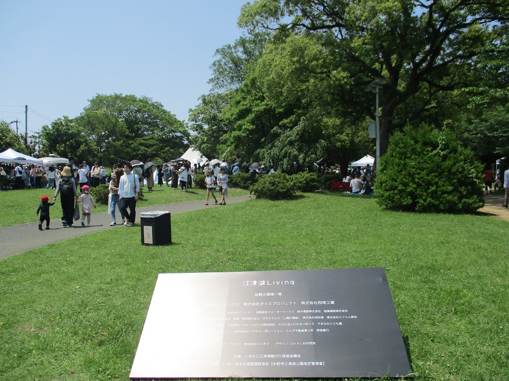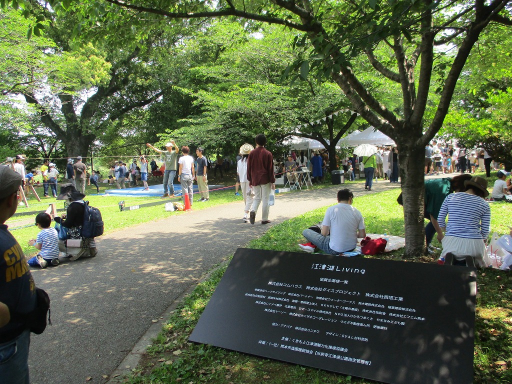 よい天気の江津湖となり暑くなりそうです。今日は上江津地区で「江津湖living」がありました。秋の開催を含めると3回目の開催となります。