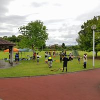 朝は雨が降っていましたが、始まるころには雨もやみ、よかったのではないでしょうか。少し風が強かったのが心配でしたが、無事実施することができました。