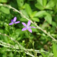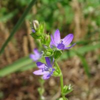 こんにちは、水前寺江津湖公園です。 園内で紫色の花、キキョウソウ、ヒナキキョウソウを見ることができます。 両方とも帰化植物となっています。