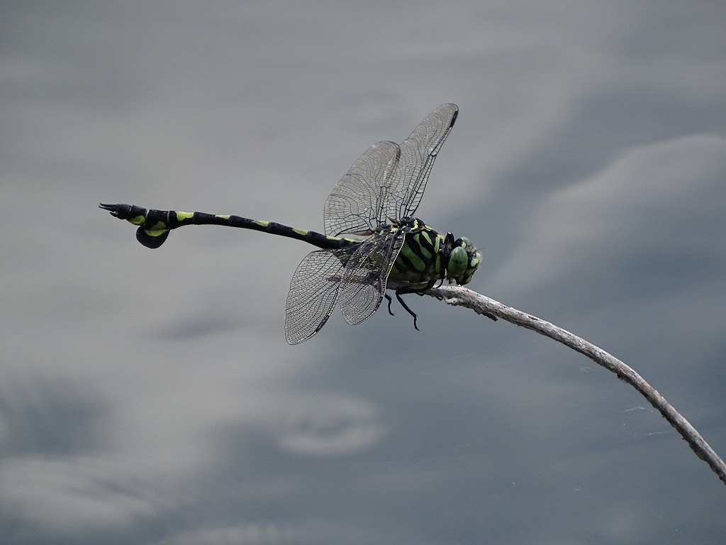 ウチワヤンマは熊本県では希少種となっており、江津湖でも数の少ないトンボです。よく同じ場所にとまっていますので、観察しやすいトンボですよ。