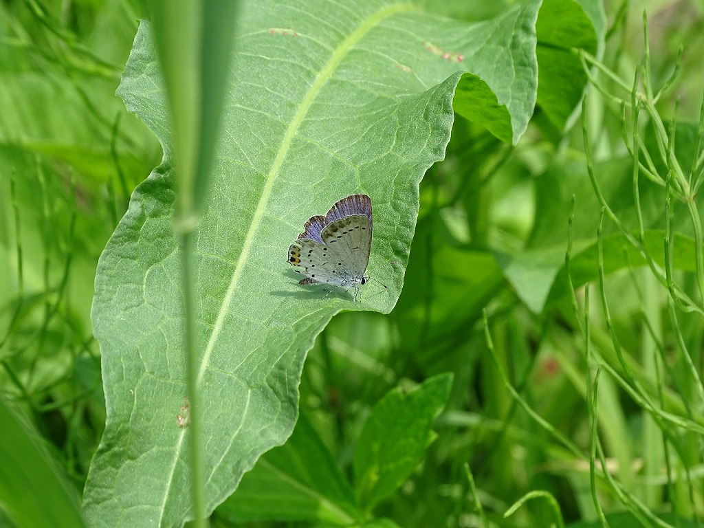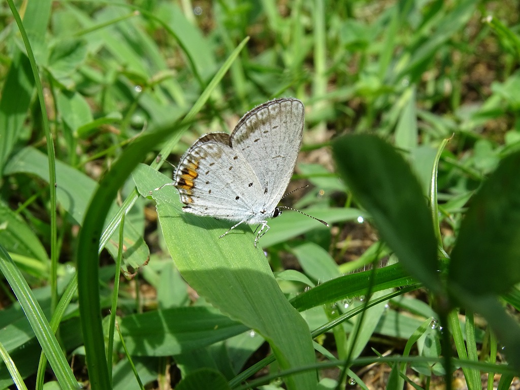 園内でよく見かけるシジミチョウの仲間、ツバメシジミです。