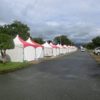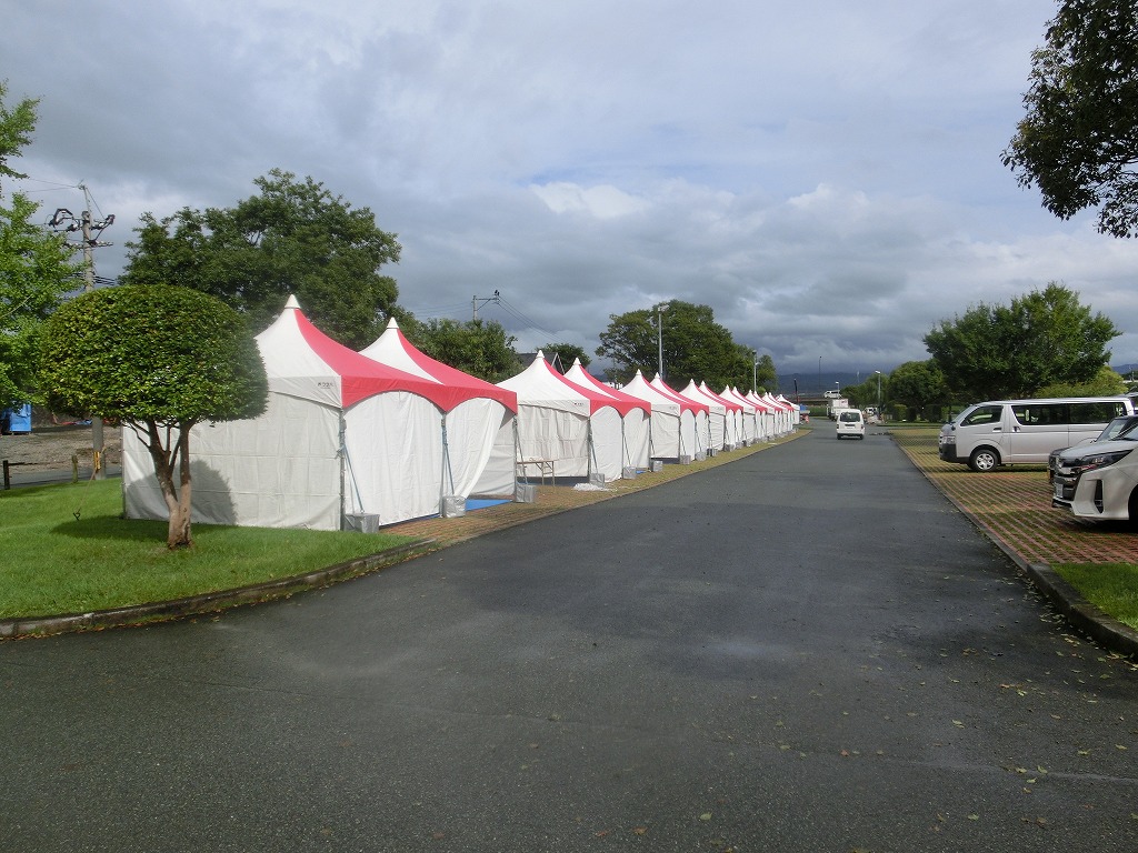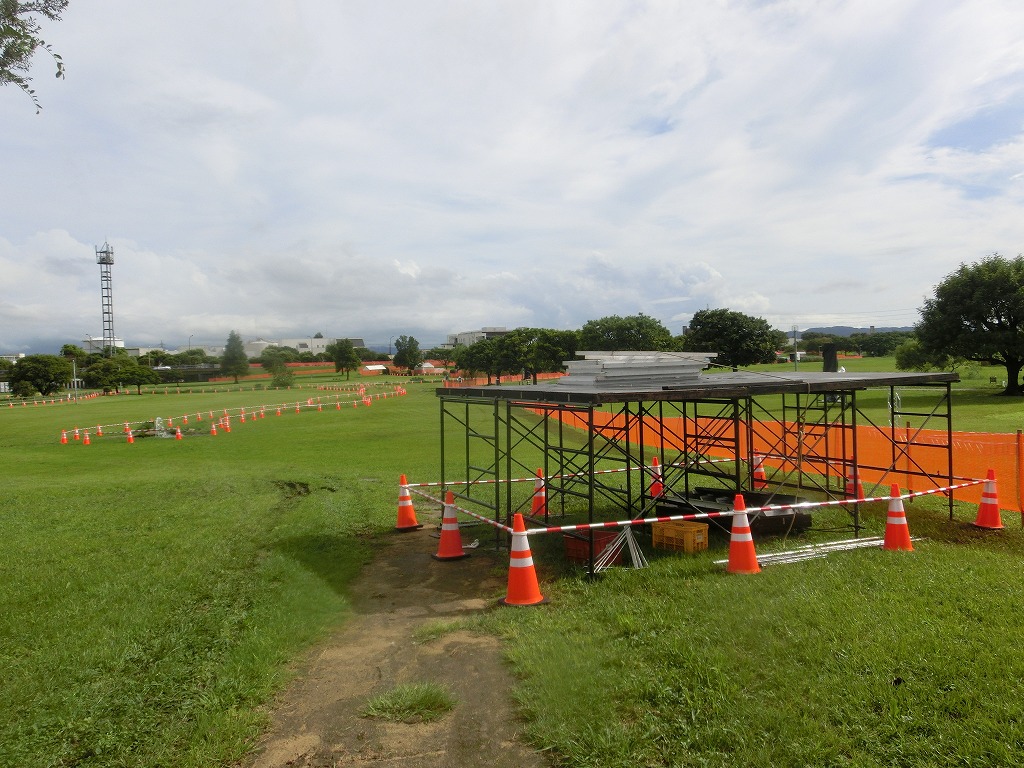 こんにちは、水前寺江津湖公園です。 二日後は待ちに待った江津湖花火大会です。会場の広木地区では、準備が大詰めを迎えています。
