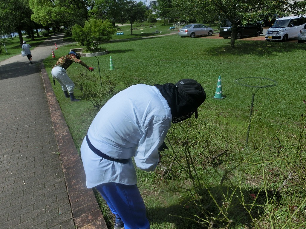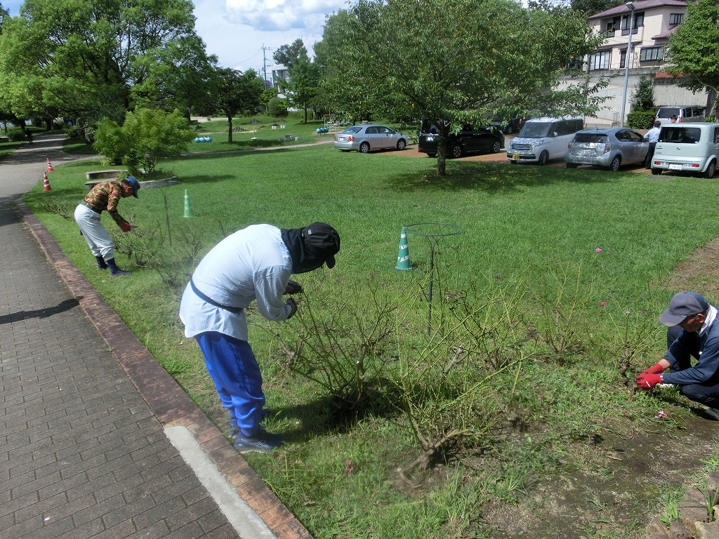 今回の剪定は、秋に花を咲かせるための剪定です。冬の強剪定に比べると、軽めの剪定作業となります。秋になると、またきれいなバラの花を咲かせてくれると思います。 ご協力いただいた熊本市隊友会の皆様、ありがとうございました。