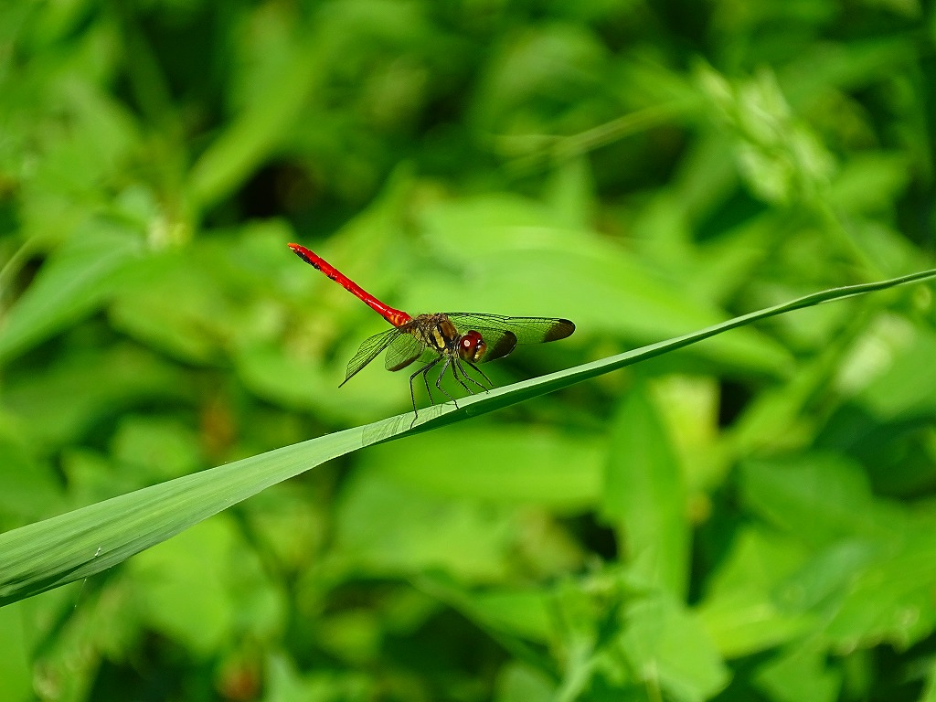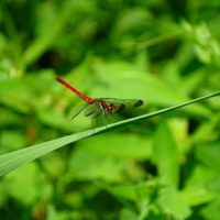 翅の先端が黒くなっているのが特徴です。 これから少しずつ赤いトンボを見かけると思います。秋を感じさせられますね♪