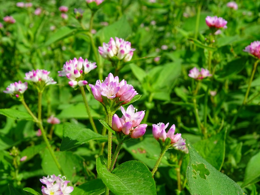 公園内ではミゾソバの花が咲き始めています。コンペイトウのようなおもしろい花の形をしています。
