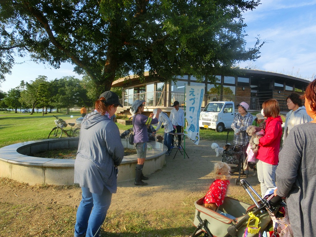 こんにちは、水前寺江津湖公園です。 今日は第62回目となるえづワン隊です。12名の隊員と13匹のワンちゃん隊員に集まってもらいました。