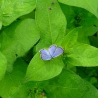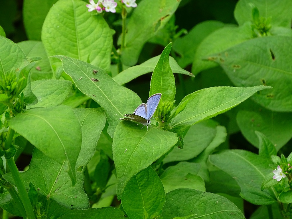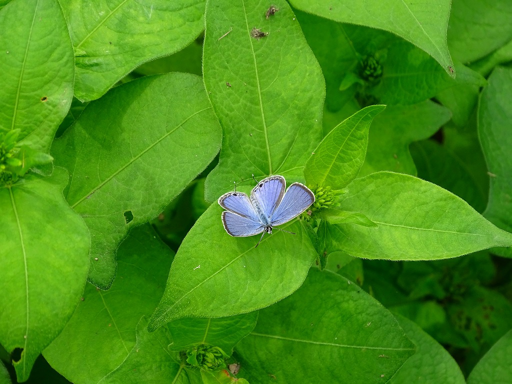 シジミチョウの仲間ですので、小さくてなかなか見つけることができません。 ちょうど夏が終わり涼しくなる頃から見かける印象です。ブルーの翅がとてもきれいですね。