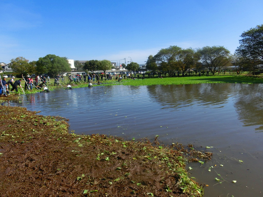 およそ130名の人の力はすごいですね。およそ2時間の作業でしたが、水面が見えるまでになりました!