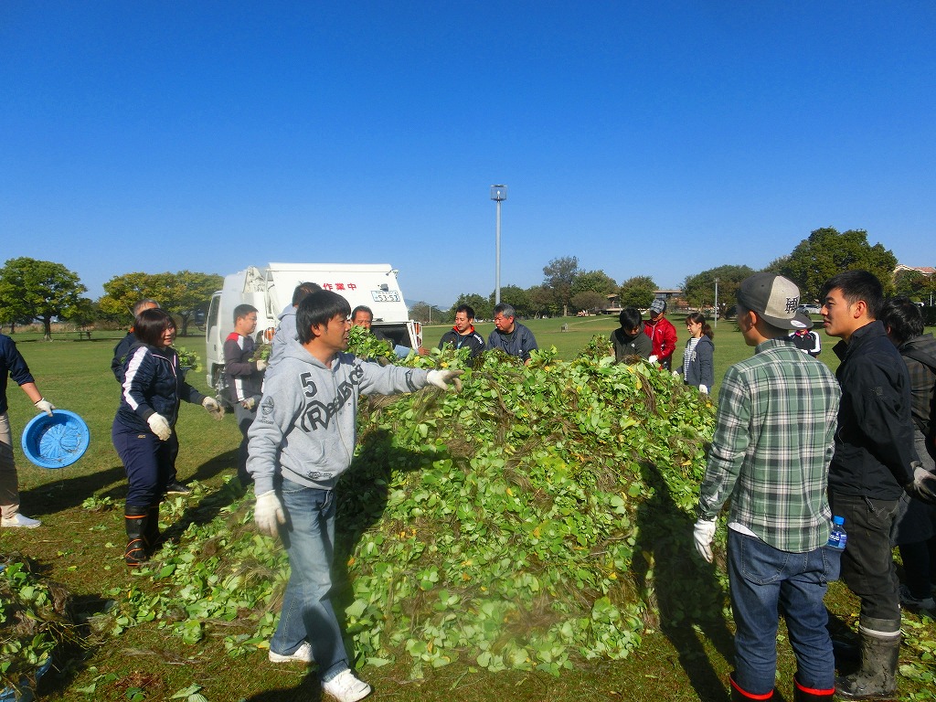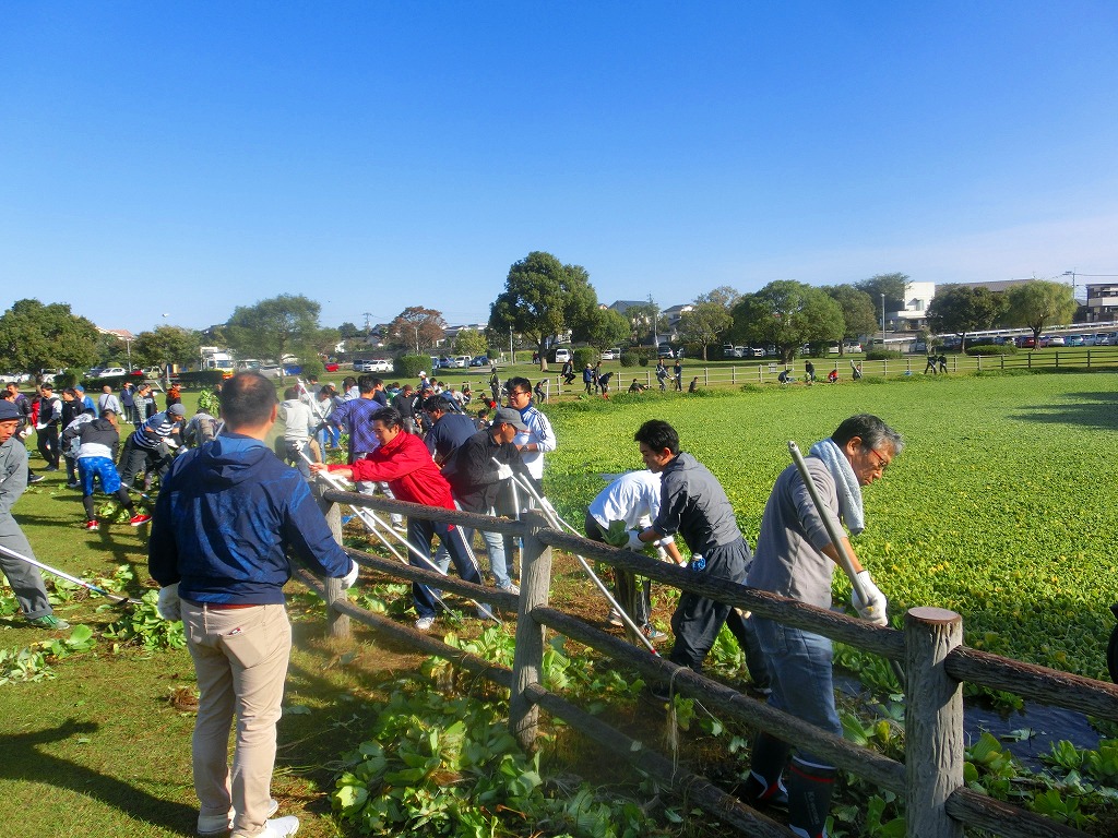 今日の朝は息が白くなるほど冷え込みました。今日はHDU(ホンダ販売労働組合)の皆様が、広木地区で水草清掃のボランティア活動を実施されました。ちょっと冷え込みましたので、水草清掃の作業は寒くないかと心配しましたが、日中は日差しが照り付け、ボランティアするにはちょうどよい陽気となりました。