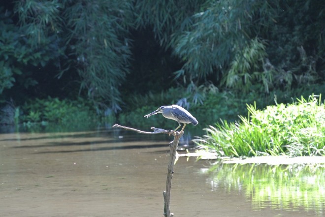ササゴイは疑似餌を浮かべ、よってきた魚を捕まえる頭のいい鳥です。