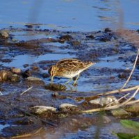 こんにちは、水前寺江津湖公園です。 シギの仲間の紹介です。写真の野鳥はタシギといいます。