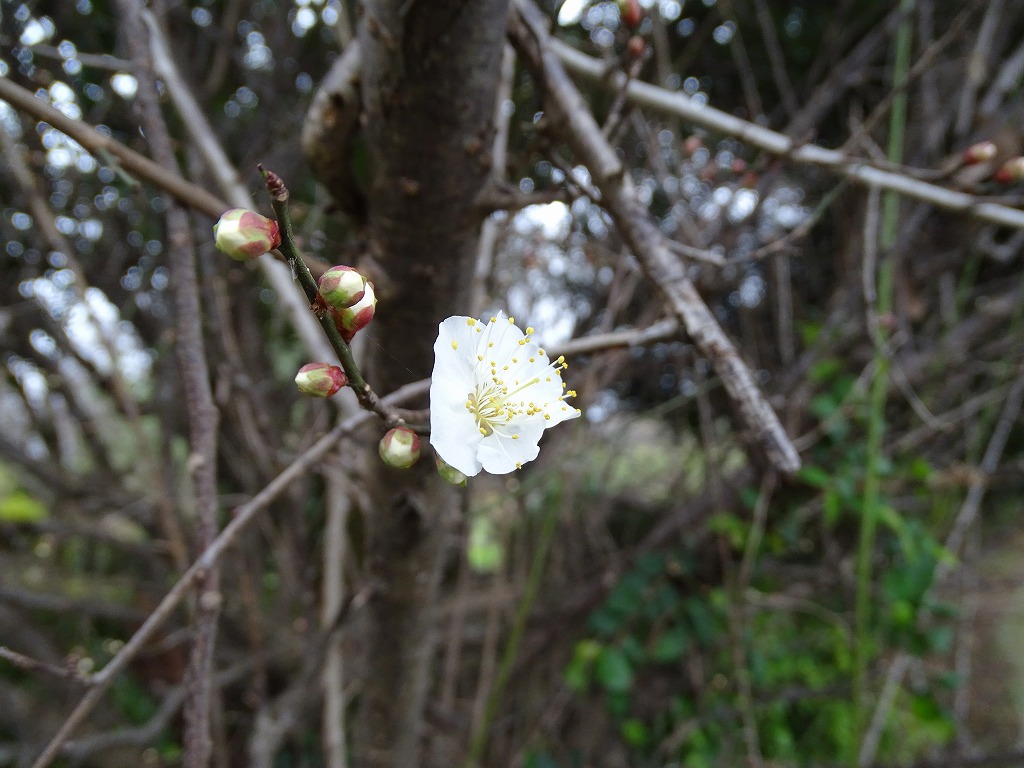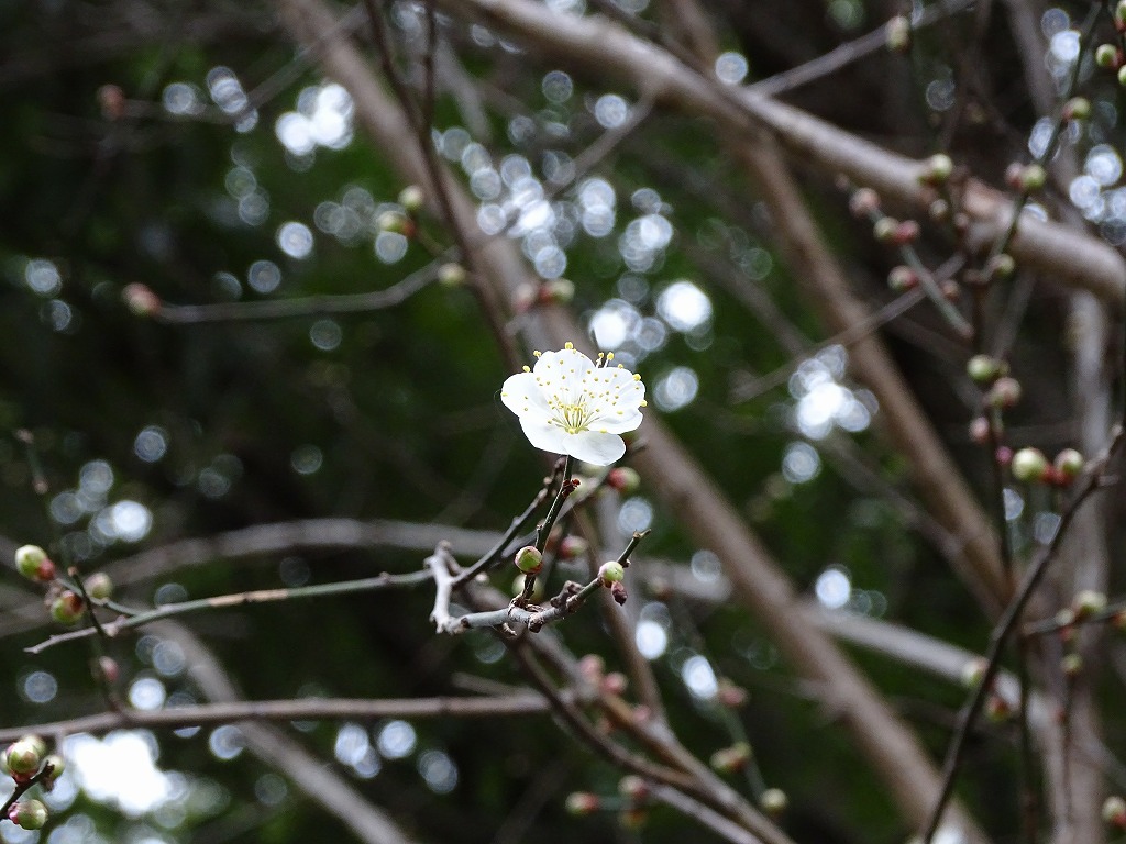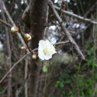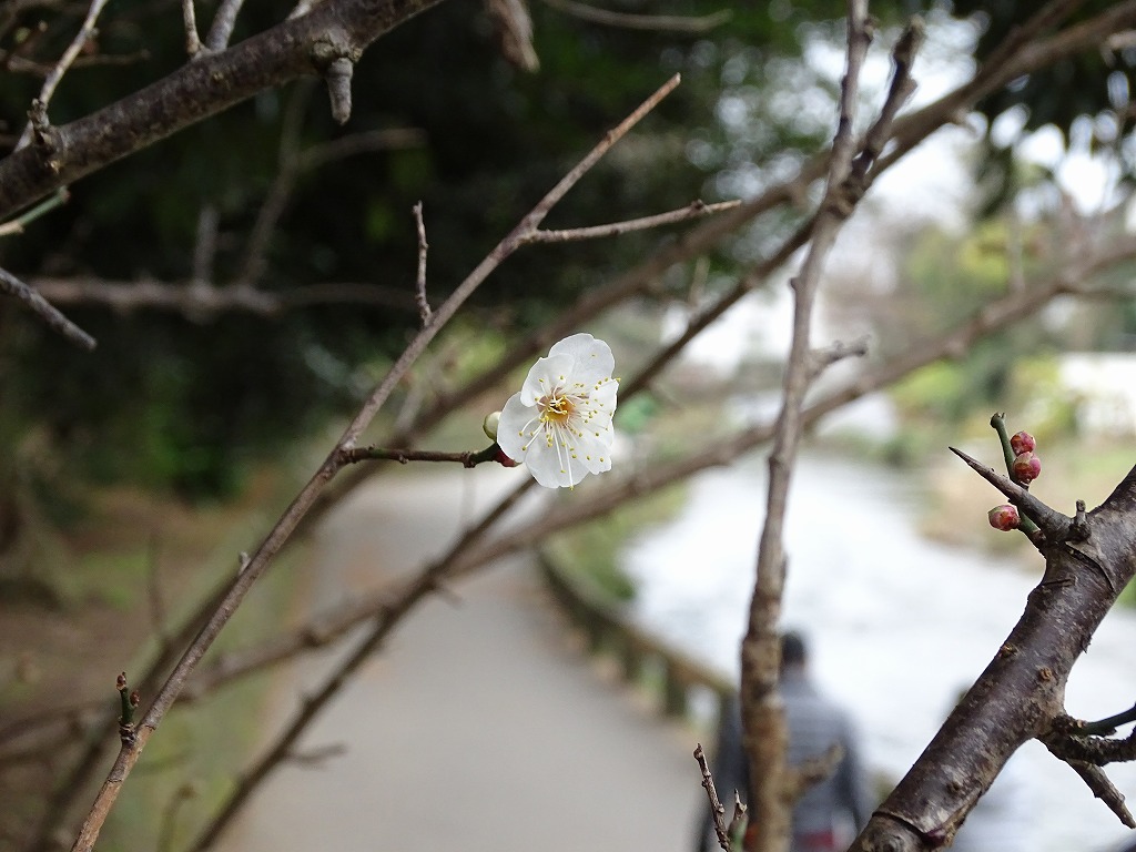 加勢川沿いを歩いていると、ウメが数輪咲いているのを見つけました。 以前のブログを見てみると、1月末ごろから咲き始めている記事を見つけました。今の時期に咲き始めているのは早い気もしますが、品種によっても違うのかもしれませんね。