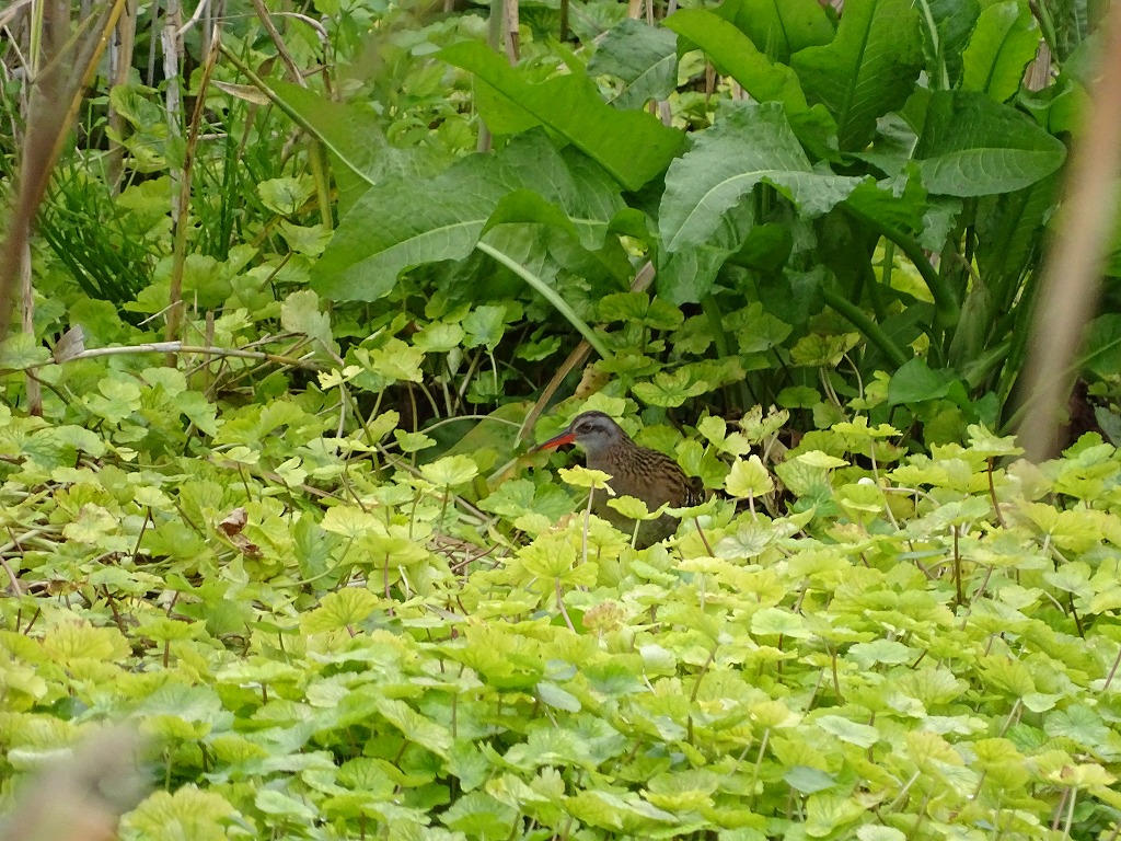 クイナです。クイナは、江津湖では決まった場所で観察できますが、出会えるタイミングがあまりありませんでした。頭しか写っていない写真です。