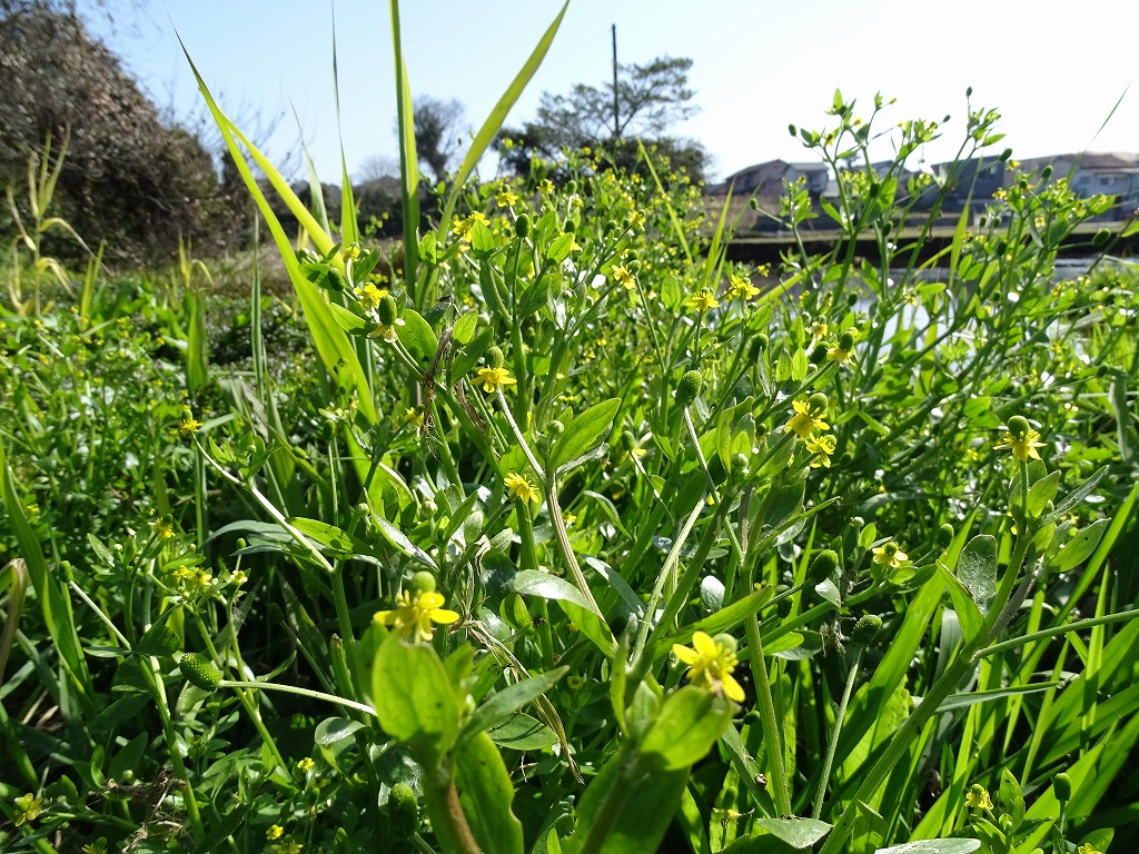 園内を歩いてみると、黄色い花が目立つようになりました。春らしい雰囲気です。その中でタガラシがほぼ満開といっていいような状態となっていました。