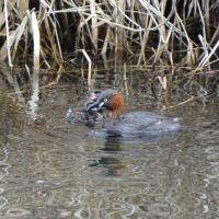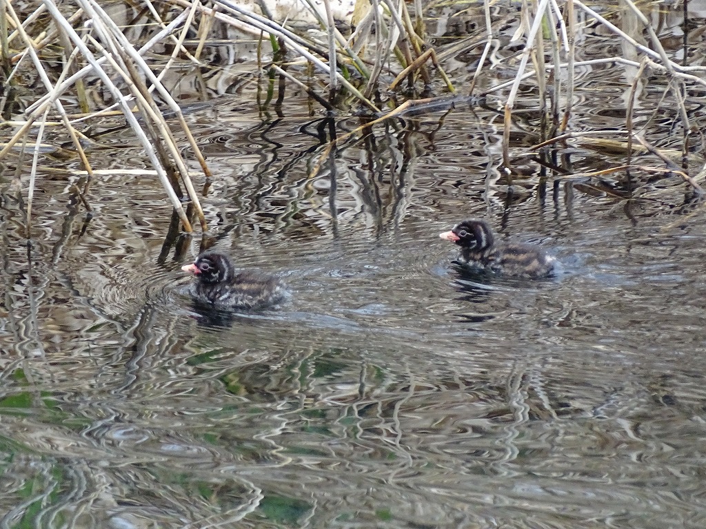 最近江津湖でびっくりしたことがありました。それはカイツブリの子どもの誕生です。