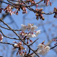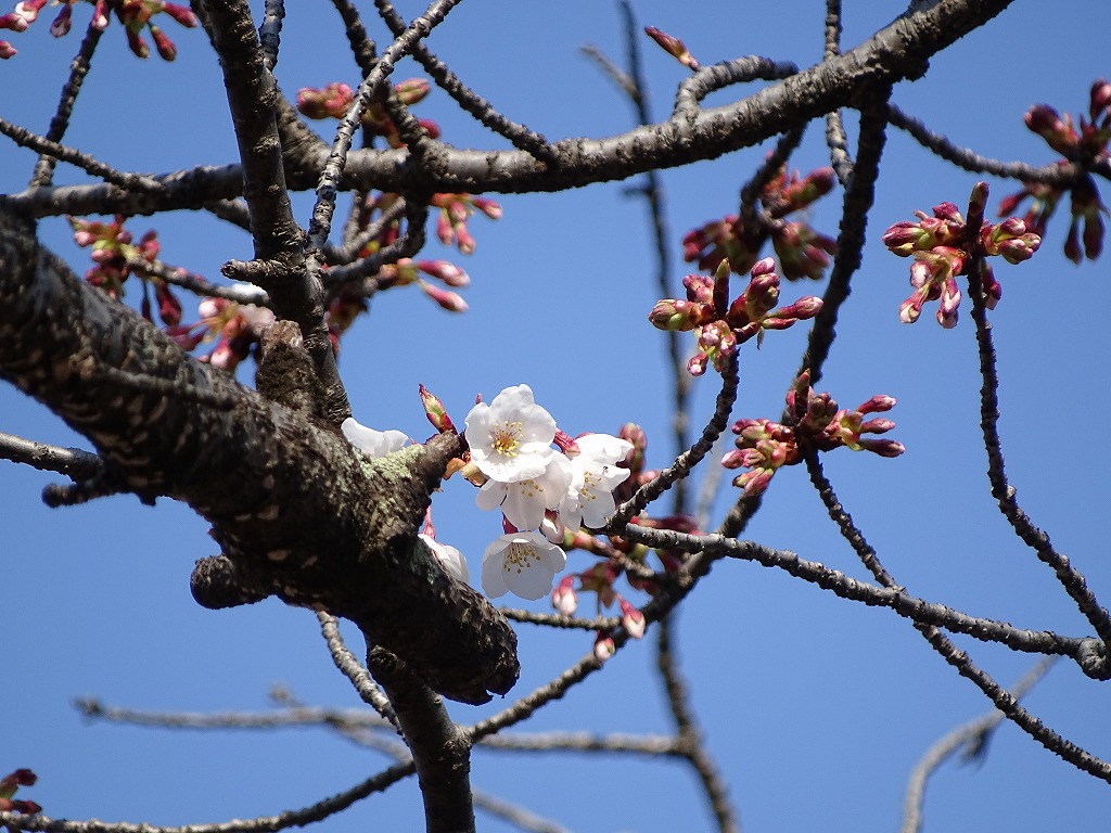 水前寺地区の児童公園のサクラ(ソメイヨシノ?)と県立図書館裏のオオシマザクラです。 これらの場所は、江津湖の中でもサクラが一番に咲き始める場所です。他の場所はまだまだツボミの状態ですが、これから暖かい日が続くと、一斉に咲き始めると思います。