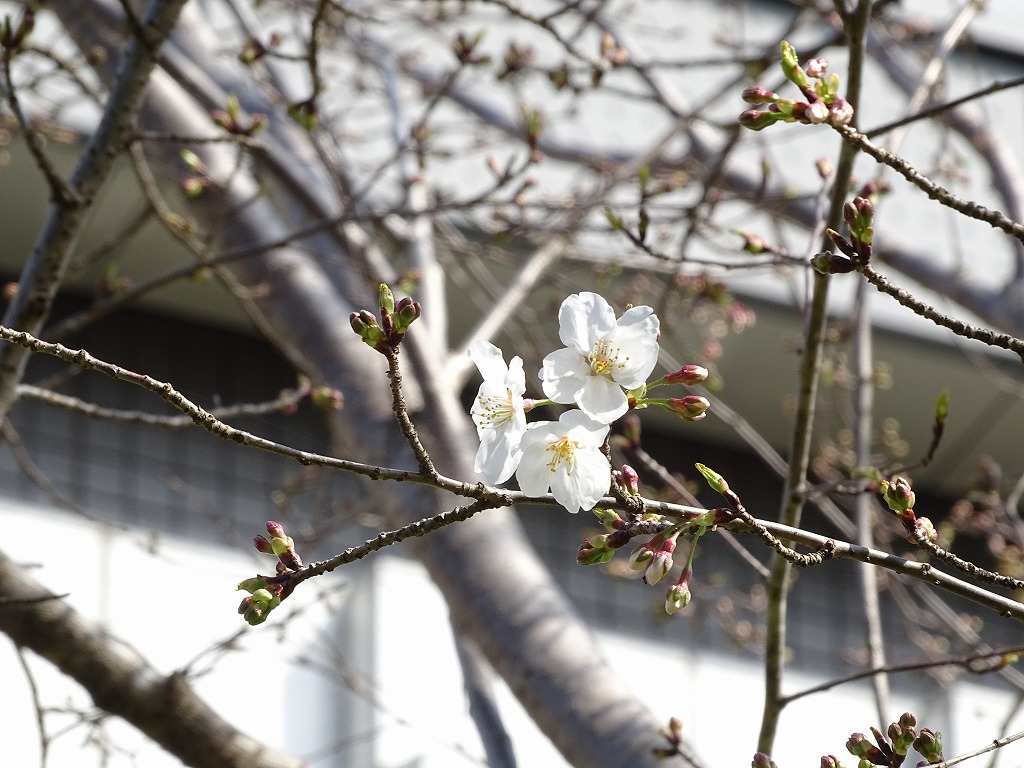 こんにちは、水前寺江津湖公園です。 暖かい日が続きます。園内のサクラが、数輪程度ですが咲き始めました。