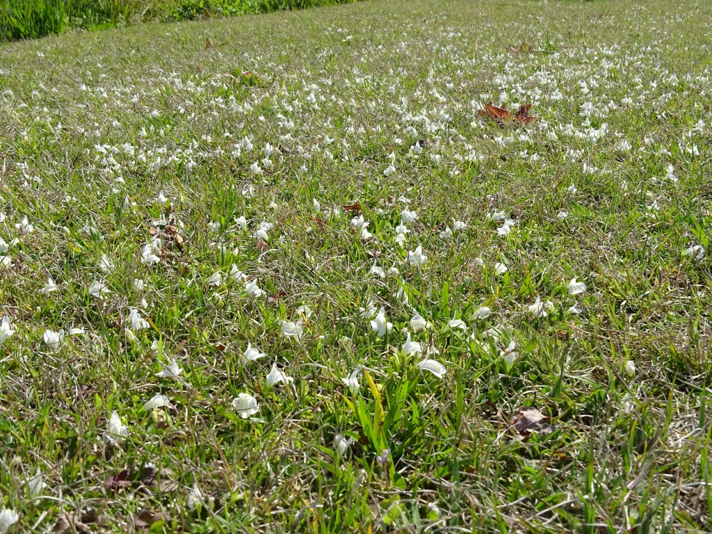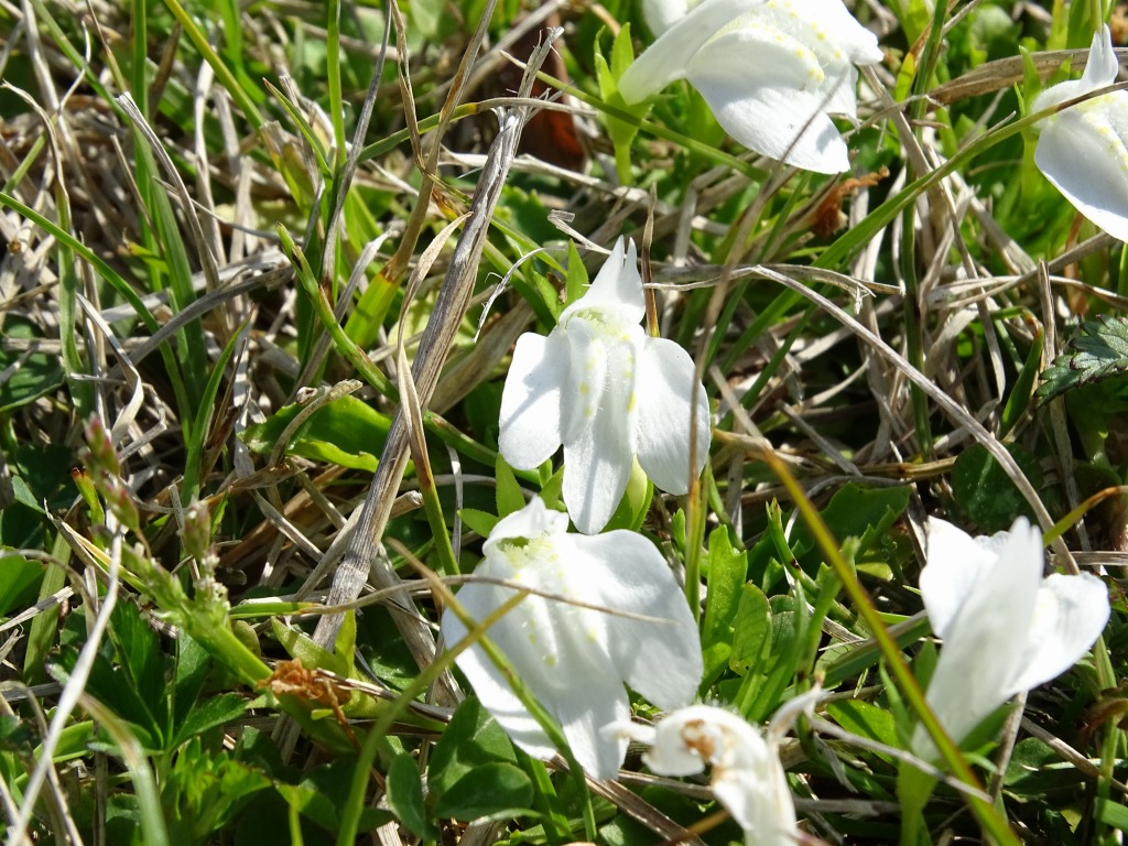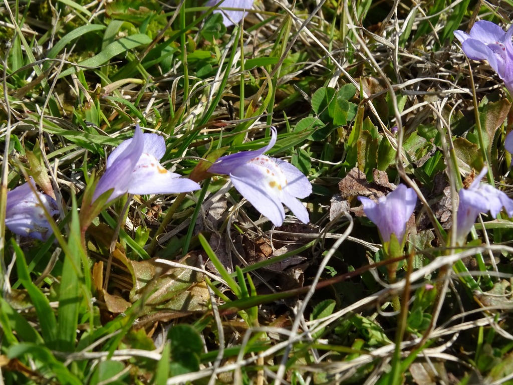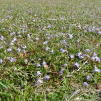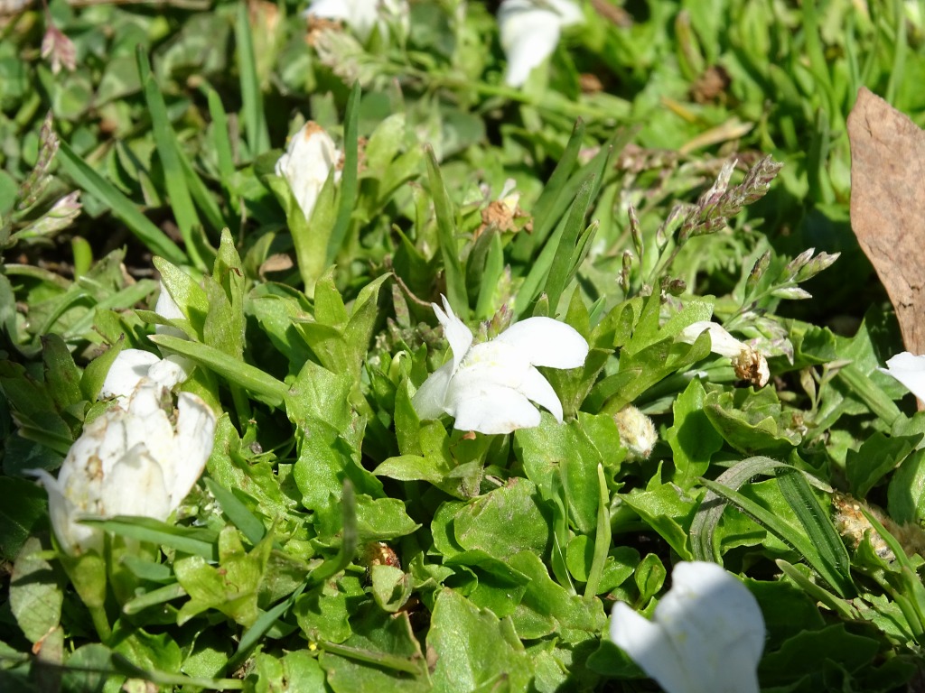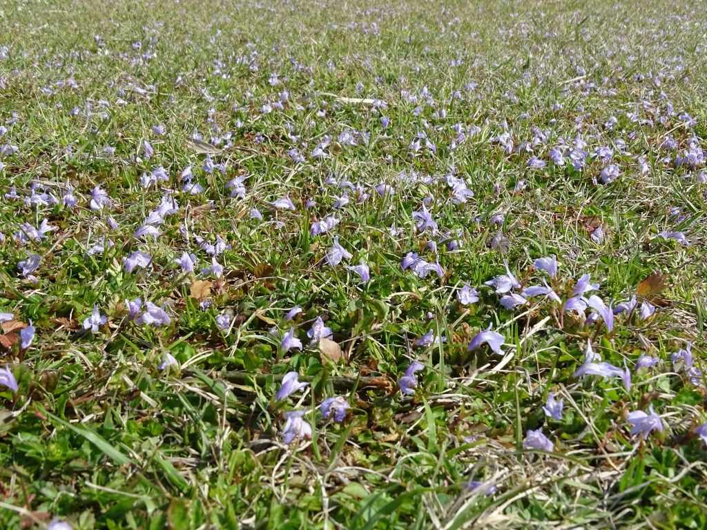 園内では色とりどりの花たちが咲き始めています。一部では紫や白のじゅうたんが見られます。サギゴケの花たちです。
