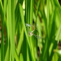 イトトンボという名のつく通り、細く小さなトンボです。アオモンイトトンボは、江津湖ではよく見かるトンボです。