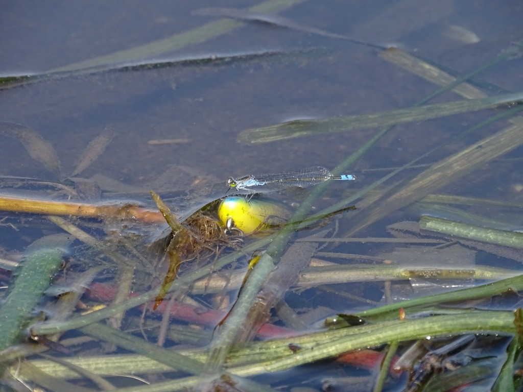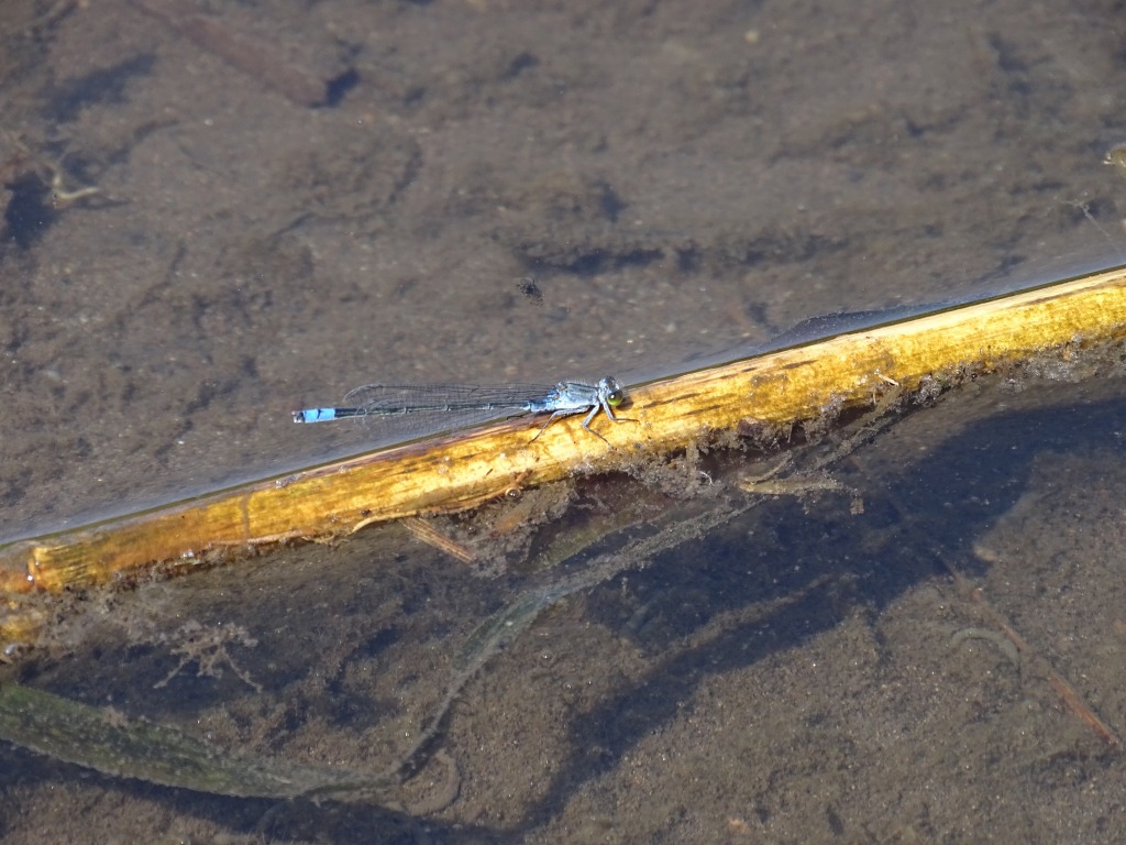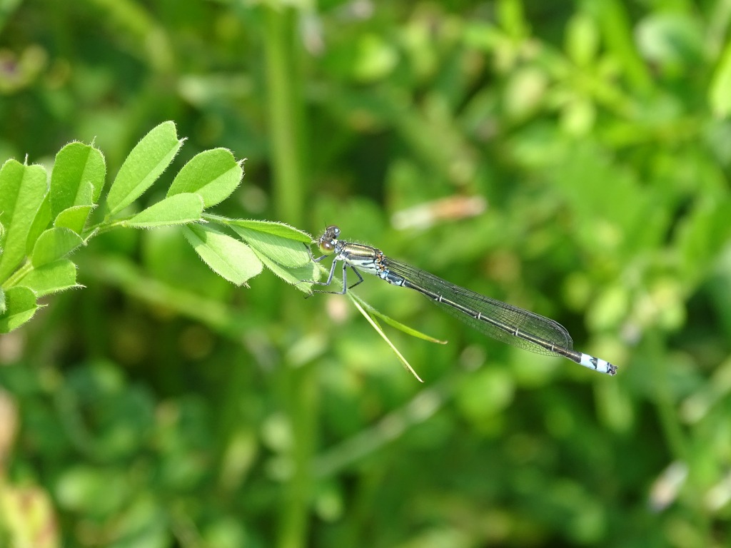 イトトンボの仲間は非常に見分けることが困難です。しかしクロイトトンボは、オスが粉を吹いているようにみえるため、比較的わかりやすいです。が、未成熟個体やメス個体など様々いますので、そう考えると難しいですよね。体や目の後ろの模様をみたり、腹の先の模様をみたりすると、イトトンボは区別できるようになると思いますが、動いている個体では見づらいので、写真に撮って調べる必要がありそうです。