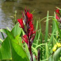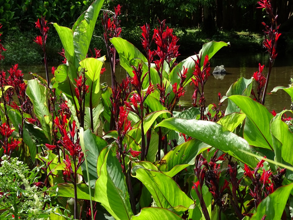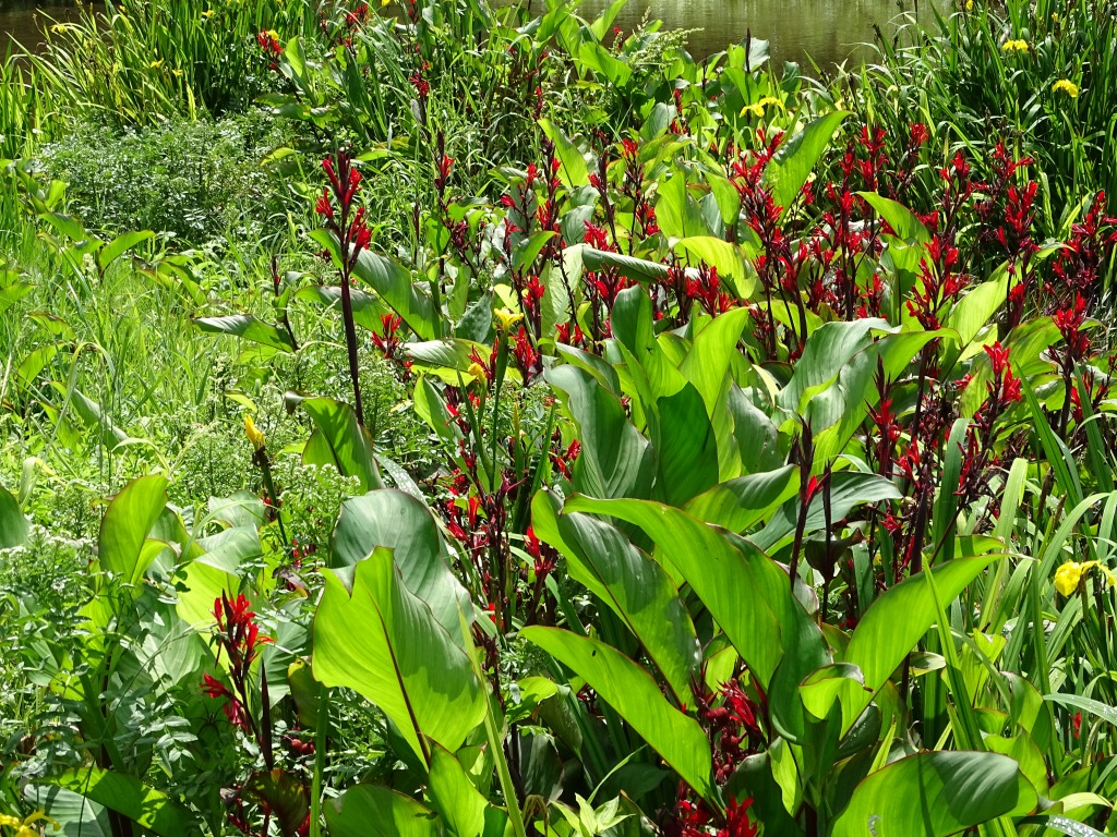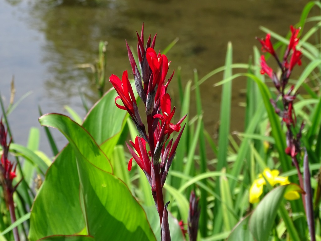ダンドクはカンナ科の多年草で、江津湖では赤やオレンジの花を見ることができます。 よく見かける園芸種のカンナの原種のひとつで、江津湖では一部の場所でしか見ることのできない、数の少ない植物の一つです。 9月いっぱいまで花を楽しむことができると思います。