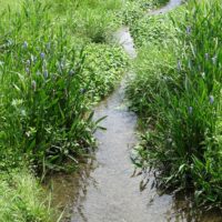 ナガバミズアオイは多年生の水生植物です。花は淡い水色できれいな花ですが、ミズアオイとは違い、保全せずとも増えていく植物です。広がり方も早く、水路をふさいでしまう恐れがあります。もともとは江津湖になかった植物で、気が付いたころには江津湖に入っており、もしかしたら誰かが持ってきた植物かもしれません。きれいだからといって、勝手に外来植物を植えるのはやめてほしいものです。