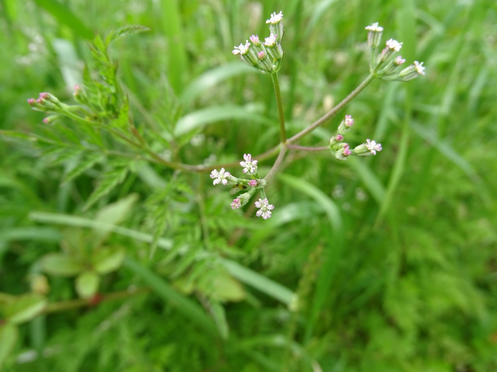 園内でヤブジラミの花を見かけました。小さな白色のかわいい花です。