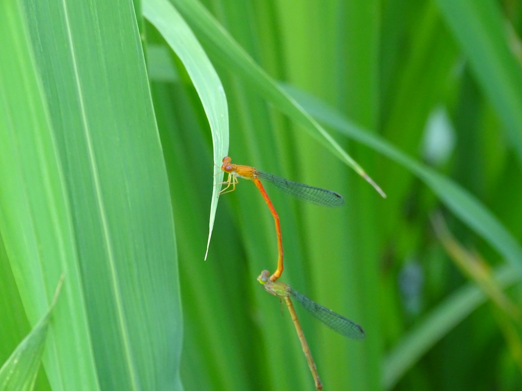 江津湖では、以前に比べたら増えてきている印象ですが、まだまだ数の少ないイトトンボです。体が真っ赤ですので、他のイトトンボとはすぐに区別ができます。 しかし、似ている種で南方種のリュウキュウベニイトトンボというトンボがいます。江津湖に、もしかしたら入ってきているかもしれません。